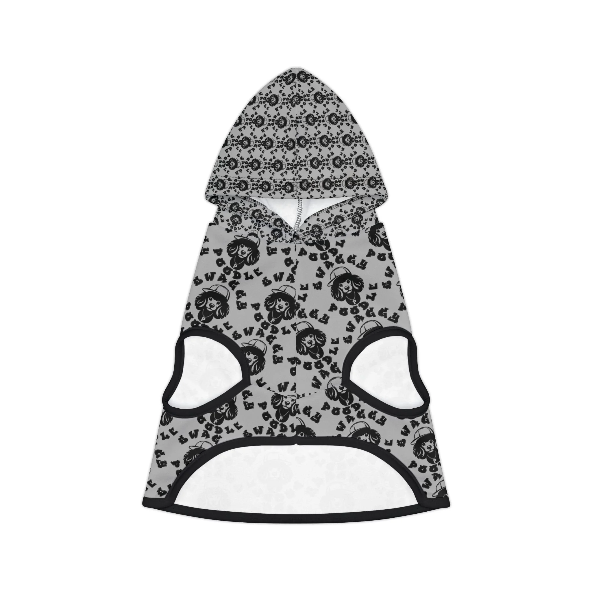 Swaggy Poodle Street Grey Pet Hoodie — Grey Graffiti Mascot with Micro-Pattern Hood