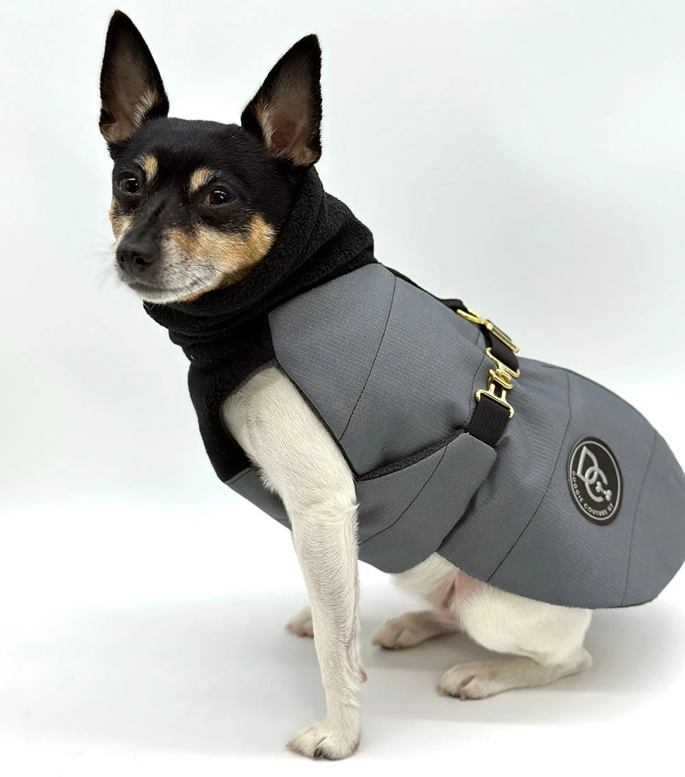 Keep your pup warm and dry this winter with our NEW City Chic Winter Coat. The Ottertex exterior stands up against wind and rain and the Sherpa fleece lining inside and on the chest and belly keep your pup warm. Complete with a reflective logo patch for better visibility at night. Adjustable surcingle straps around the belly for a custom fit. Sizes xx-small and x-small have a built-in D-ring so you can attach your favorite leash. Machine washable on gentle cycle with cold water, lay flat to dry. Available in XX-Small, X-Small, Small, and Medium, please see our size chart in the last image slide to find their best fit. A few large sizes available.